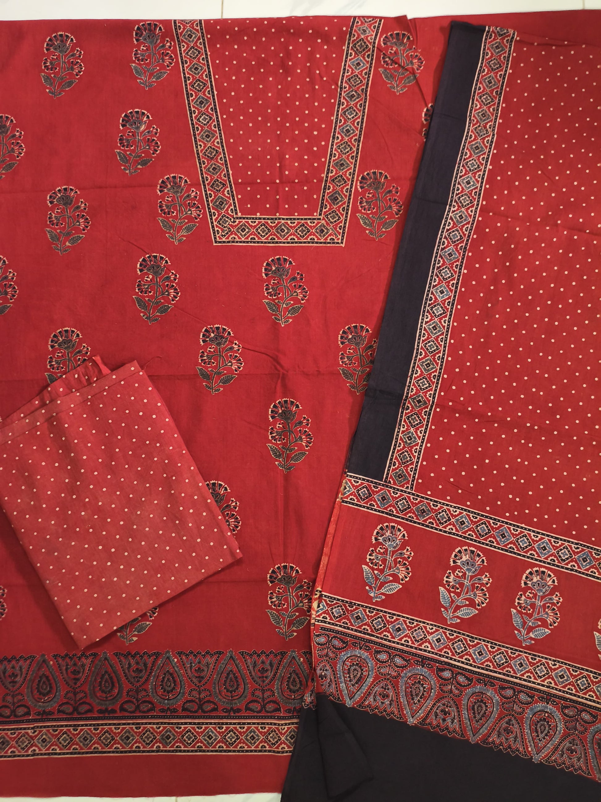 Ajrak suit three pieces cotton material in cream and red and black combo 2 traditional block and authentic